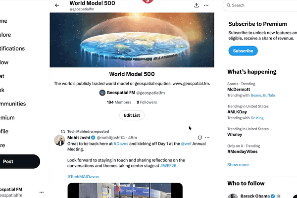 In 40 minutes: live event with Ryan Kmetz about an AI tool for the geospatial stock market, and World Model 500 annual report prep