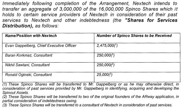 You might be curious how much they eventually settled for after all that noise about turning down £1M. This announcement says it was for $CAD1M in an all Nextech stock transaction on Aug 10 2021! You may have observed that Baran’s video about turning down £1M was 8 months earlier Nov 19 2020… So given it was in dollars rather than pounds it looks like they got less money. I looked for further details in the Canadian Stock Exchange IPO prospectus for when Nextech spun ARway out as an independent company. On page 9 of the prospectus it says the co-founders got 250k shares each: