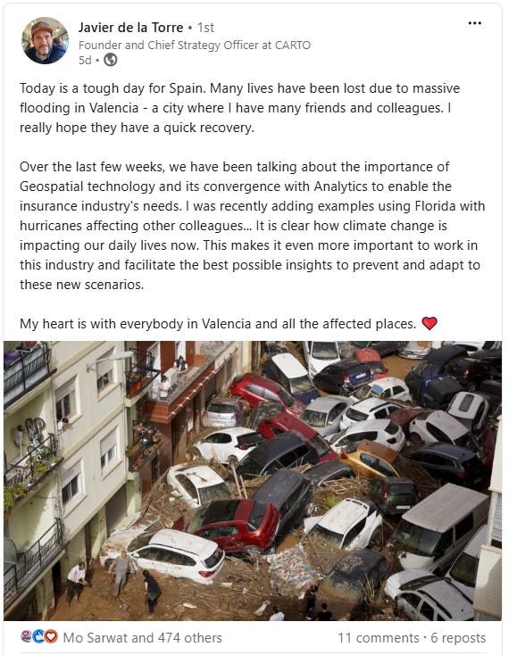 …illustrates the consequences for insurance companies that do not properly size natural catastrophe risk. This makes it straightforward to understand why Swiss RE bought Fathom. It will be interesting to continue to observe the acquisition trend in this space amongst competitor insurance companies.
