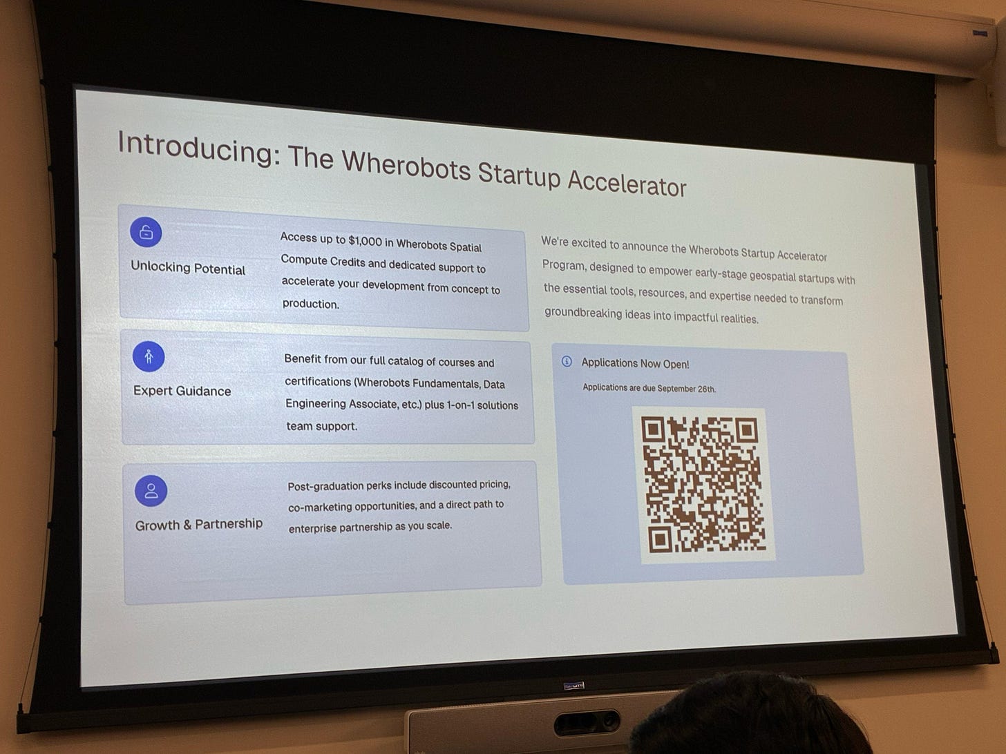 Something cool mentioned was the Wherobots startup accelerator, recommend checking it out: