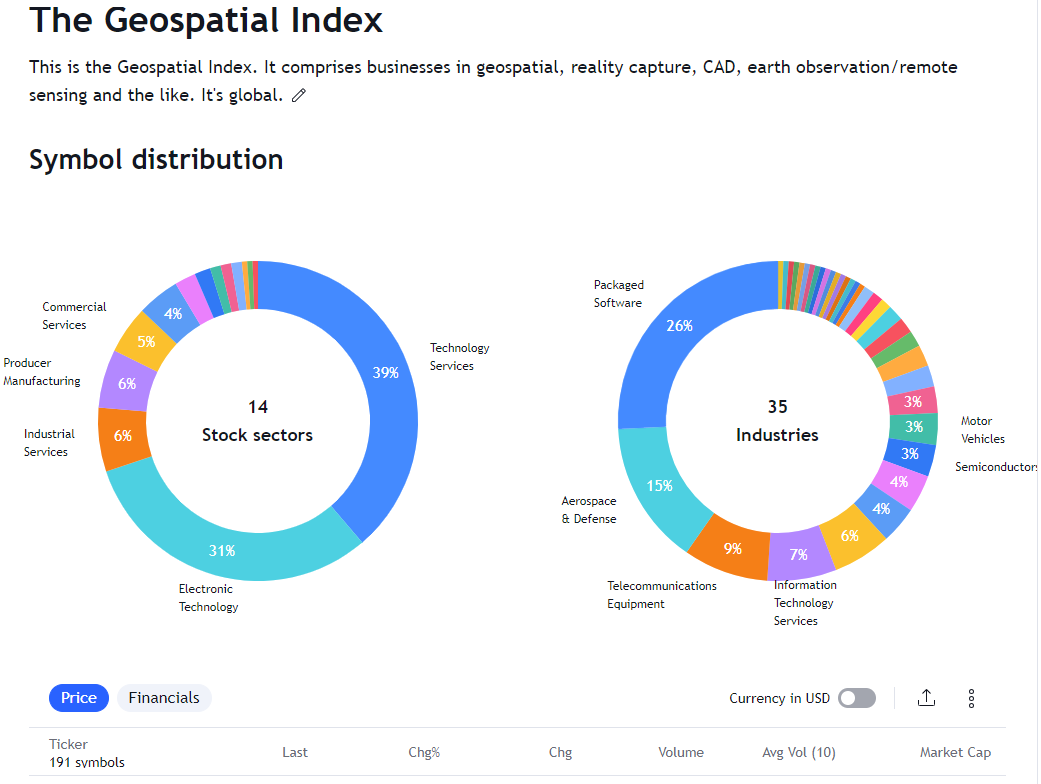 The Geospatial Index is a comprehensive listing of all publicly traded geospatial businesses worldwide. Why? The industry is growing at ~13.8% annually. For only $11,600 to start, this growth rate is $5,000,000 over a working life.