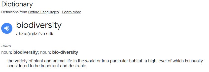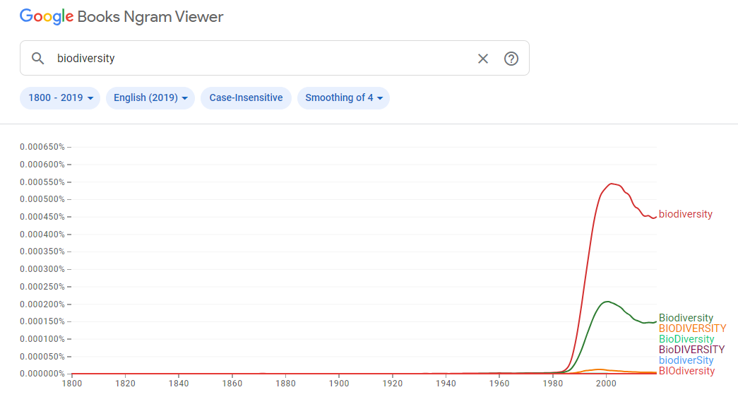 Biodiversity can be measured. But first, measurement of the word’s popularity over time is also interesting, the peak was 2000: