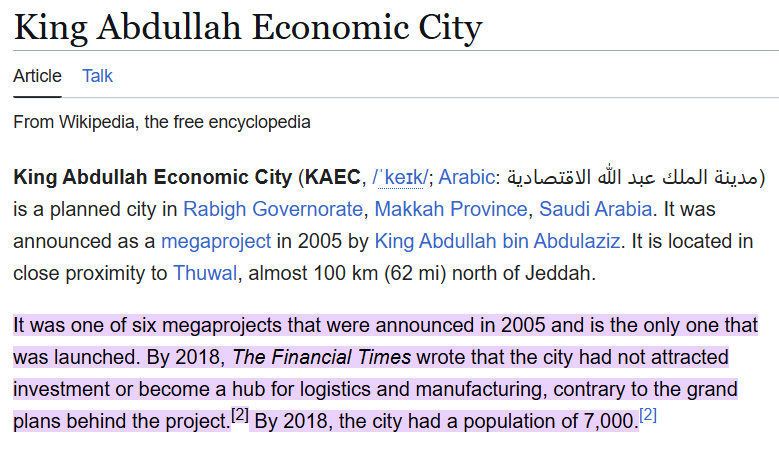 Hub for logistics. Grand plans. This is The Line. This is Neom. They are making the same mistake again as King Abdullah Economic City. Where was Johnny Harris, a popular entertainer with 6.2m YouTube subscribers, performing the proper work of a journalist pointing this out? Instead we have to turn to Matt Bevan, Australian state media journalist who observed that these plans emerged when a significant proportion of the Saudi elite was locked up supposedly in a corruption purge: