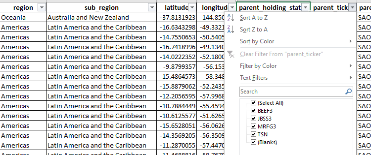 Figure 1. GeoAsset dataset of 119 beef abattoirs across the 5 largest meatpackers.