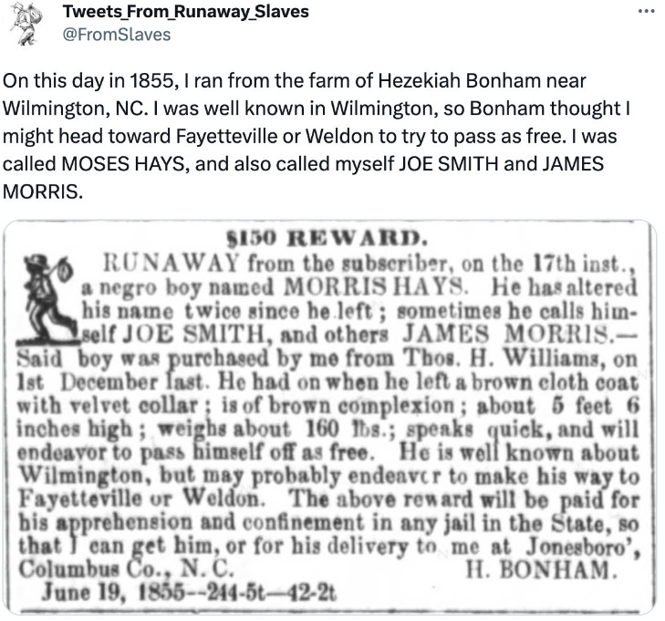 Another amazing initiative of Bill’s is Runaway Project, associated with Cornell’s Freedom on the Move. This involved setting AI/ML capable staff from his organisations, including Eric, on the task of describing African American history via thousands of old runaway slave newspaper ads. I just love the way their stories are reconstructed in a humanised fashion from the terse words of the ad: