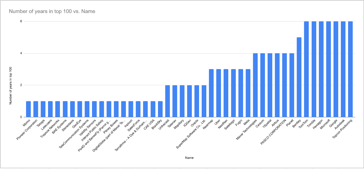It is meaningful to me because when I was getting started building The Geospatial Index it was a large list of companies to trawl through looking for publicly traded ones: